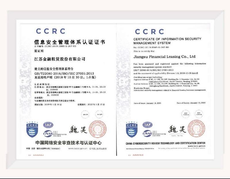 3月22日,江苏租赁顺利通过ISO27001(信息安全管理体系)认…
